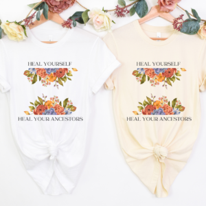 Heal Your Ancestors_ White and Natural Bella + Canvas 3001 Flatlay_1_Spiritual Binding Herbs