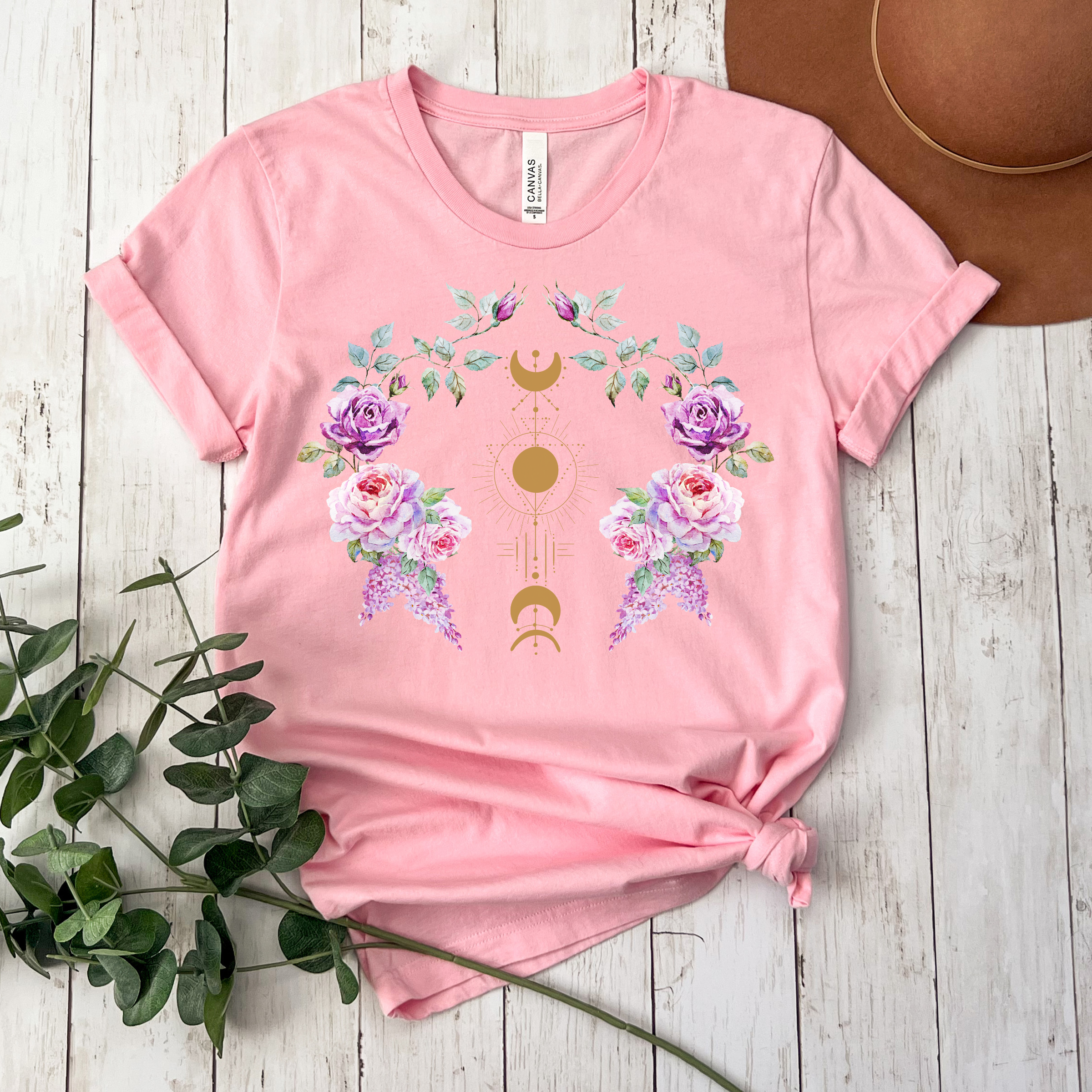 Moon Phases Pink Bella + Canvas 3001 Flatlay_1_Spiritual Binding Herbs