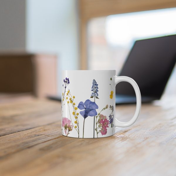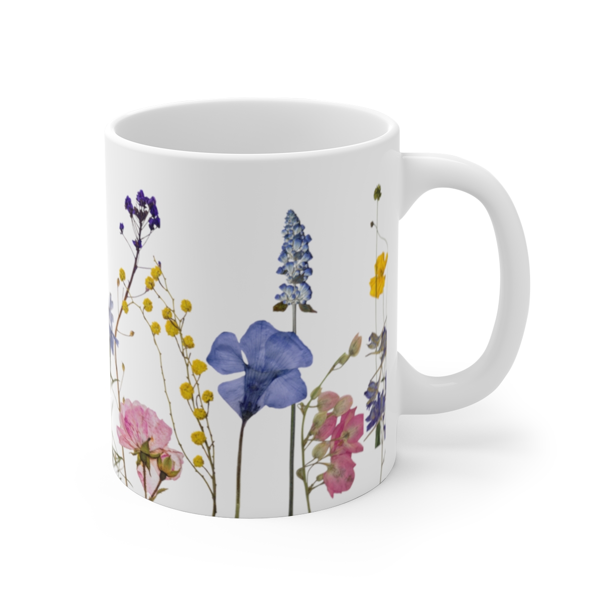 Wake up and smell the flowers. This pressed flower ceramic mug is the perfect vessel to imbue your beverage with all your intentions for the day. This durable ceramic mug comes in a popular 11-ounce size and the high quality sublimation printing makes it an appreciated gift to every true hot beverage lover.