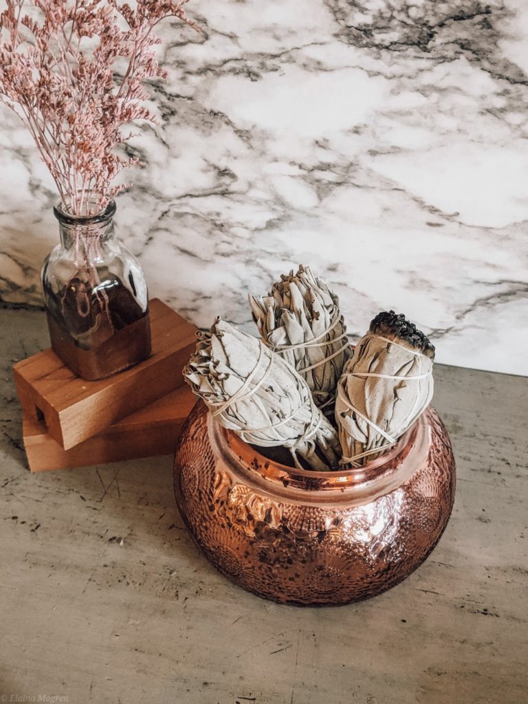 All Elements Apothecary now called Lit Rituals makes GORGEOUS smudging bundles. I LOVE them, they’re almost too beautiful to burn 😍 otherwise I find other types at my local metaphysical store. I also burn incense sticks regularly; it is thought to have the same cleansing effect and they smell oh-so-good. I’ve done some trial and error buying online and I found that sticking to ones that are produced in small batches and hand-rolled are the ones that have the best quality and great burn time.