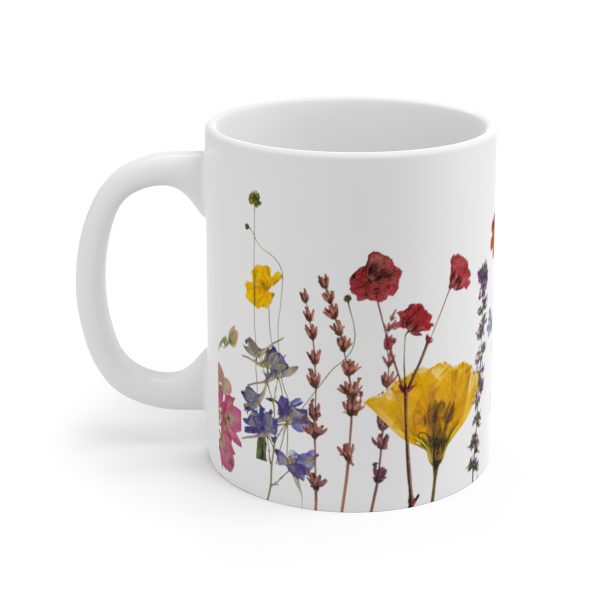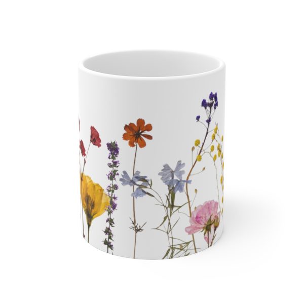 Wake up and smell the flowers. This pressed flower ceramic mug is the perfect vessel to imbue your beverage with all your intentions for the day. This durable ceramic mug comes in a popular 11-ounce size and the high quality sublimation printing makes it an appreciated gift to every true hot beverage lover.