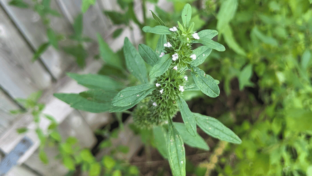 Now, while both flowers are tubular, the one aspect that made me question what plant I had was that the cluster of blooming flowers was far less on the American Water Horehound. As you can see with Motherwort, the flowers are usually showier. But due to the lower amount of rain, we had this last summer, it was easy for me to explain why this still could have been motherwort even though my plant displayed far less beautiful blooms.